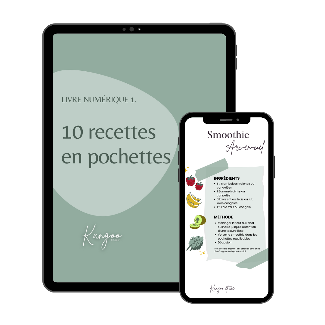 Meals, smoothies, snacks and desserts. The idea of this digital book is to give you a few easy recipes to integrate or freeze for your Kangoo et Cie pouches.
